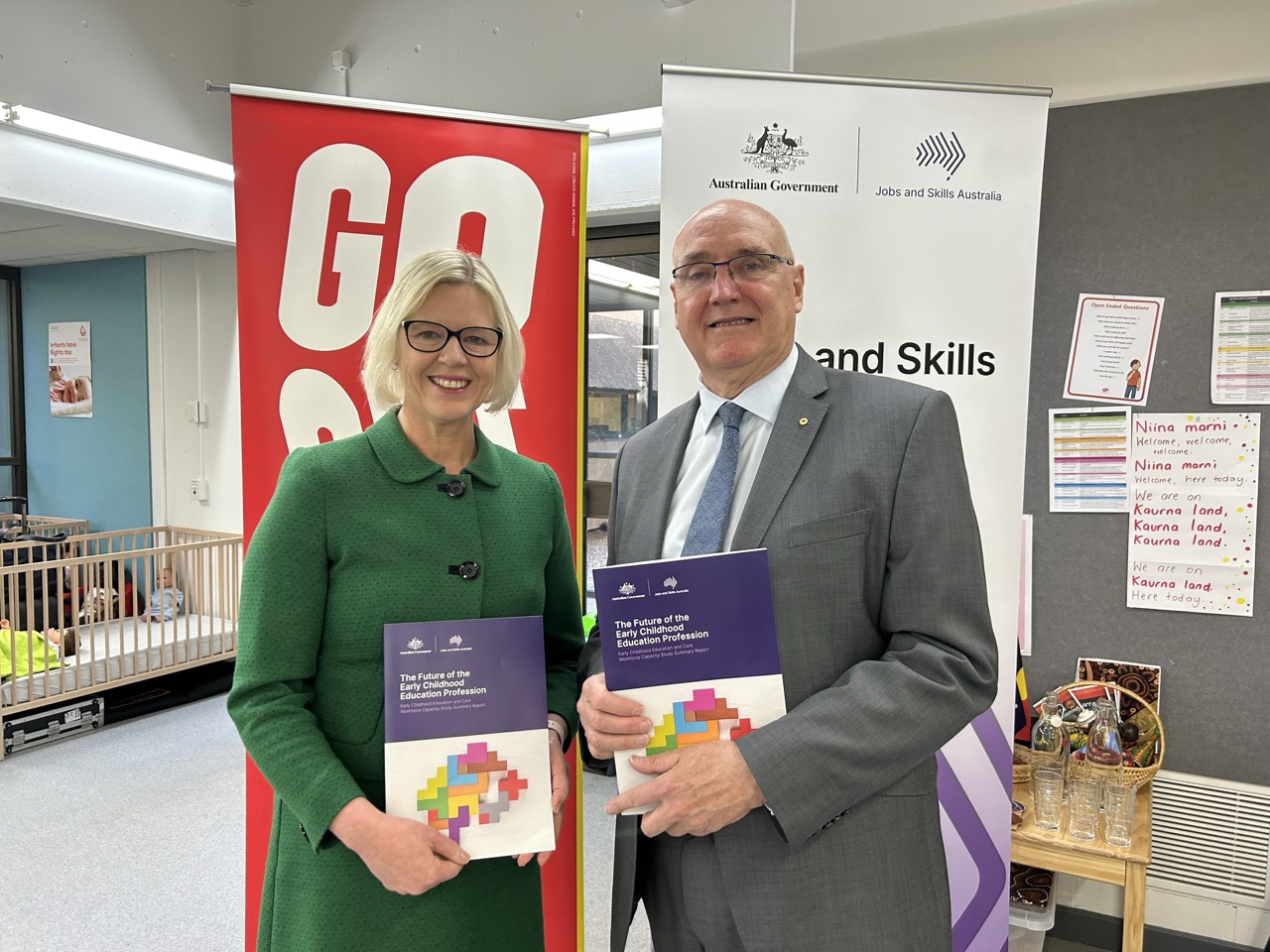 HumanAbility CEO Emma King OAM joined the Minister for Skills and Training the Honourable Andrew Giles MP and Jobs and Skills Commissioner, Professor Barney Glover AO, to officially launch the highly anticipated Early Childhood Education and Care (ECEC) Capacity Study at an event in Adelaide.